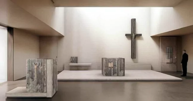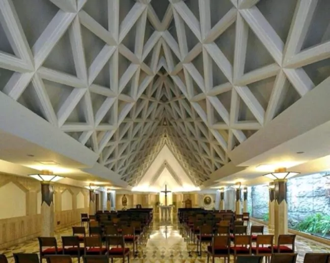 Nemělo by být žádným překvapením, že papež František uděluje ceny takovéto architektuře, ani že svou mši slouží téměř každý den v obludně ošklivé kapli: jde o architekturu, která ztělesňuje a evokuje nový katolicismus, který se podle něj zrodil na druhém vatikánském koncilu a z něj a který se odvážně vydal novou cestou – tak novou, že tato Církev musí zavrhnout staré formy bohoslužby.1