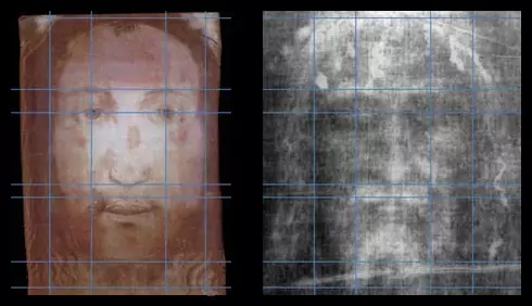 Vlevo tvář z Manopella, vpravo tvář z turínského plátna